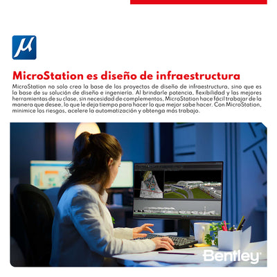 DESCRIPCIÓN MicroStation es el instrumento profesional para diseñar, modelar y gestionar la infraestructura. Ofrece potencia, control, eficiencia y seguridad. Permite a los usuarios ofrecer diseños innovadores y visualizaciones creativas, y consolida elementos críticos del proyecto en un único entorno para obtener resultados de proyecto seguros y efectivos. Disponible en versión perpetua y suscripción anual Virtuosity CARACTERÍSTICAS BENTLEY MICROSTATION • Localice proyectos geoespacialmente: integre información geoespacial de cientos de sistemas de coordenadas compatibles en sus diseños. Acceda a datos de los servidores de mapas web de OGC, utilice datos de GPS en tiempo real, mapas de Microsoft Bing y cree y haga referencia a archivos PDF geoespaciales. • Incorpore formatos de diseño comunes: lea, comparta y consuma fácilmente datos precisos en formatos clave de la industria, como RealDWG™ de Autodesk® (comparta y consuma), IFC (lectura), Esri SHP (lectura) y más. Agregue y ensamble múltiples formatos de archivo, incluidos PDF, U3D, 3DS, Rhino 3DM, IGES, Parasolid, ACIS SAT, CGM, STEP AP203/AP214, STL, OBJ, VRMLWorld, SketchUp SKP y Collada. • Incorpore contenido de diseño referenciado: vea y trabaje con información de diseño de otros en tiempo real mediante referencias en vivo de archivos DGN, DWG y de imágenes grandes en 2D/3D, que se actualizan a pedido. Incluso puede hacer referencia de forma nativa a archivos PDF en sus diseños. ESPECIFICACIONES ⨭ Producir todos los entregables con una sola aplicación ⨭ Explorar más opciones de diseño ⨭ Integrar cualquier tipo de datos ⨭ Localizar y agregar contexto geoespacial VIDEOS DESCARGAS Descargar eBOOK