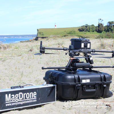 MAGNETOMETRÍA AÉREA CON DRONES Gracias a la frecuencia de muestreo de 200 Hz, el MagDrone R3 se puede conectar directamente al tren de aterrizaje de un dron, incluso a la distancia más cercana a los motores. En comparación con otros, el MagDrone R3 puede distinguir entre el ruido del motor, las frecuencias netas, las interferencias temporales y la señal de tierra. Dependiendo de las capacidades del dron en términos de maniobrabilidad y precisión del GPS, el kit del MagDrone R3 se puede utilizar para estudios de diversos propósitos, cartografías magnéticas relacionadas con la ciencia, estudios de exploración de minerales ocultos, así como para operaciones relacionadas con la seguridad. Estos pueden incluir el escaneo de áreas en busca de bombas y municiones, así como la vigilancia preventiva de áreas determinadas. ESPECIFICACIONES SENSYS MagDrone R3 es un Magnetómetro ultraportátil y liviano especialmente diseñado para montarse fácilmente en cualquier tipo de UAV o dron. El kit consta de un tubo sensor ultraliviano con dos Fluxgates de 3 ejes incorporados con una resolución de 150 pT, un registrador de datos con tarjeta SD interna, baterías recargables y un GPS integrado. Especificaciones • Fuente de Poder 11.1 V; 1950 mAh Li-Ion • Temperatura de Operación: -20 a +50 °C • Peso/ Con batería Li-Ion: 700 g/ 830 g • Consumo eléctrico: 500 mA • Dimensiones tubo sensor: 1070 x 22 mm • Datalogger: Carga 50mA, cableado interno, memoria interna 8GB. • Procesamiento de datos con software MagDrone DataTool (incluido) • Visualización e interpretación da datos con software MAGNETO VIDEOS DESCARGAS DESCARGAR DATASHEET